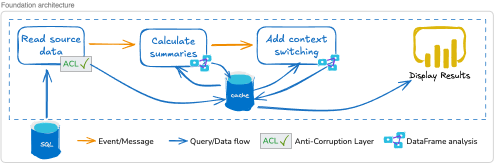 Obviously, we want to cache the original source data, so we aren’t tightly coupled to an external system. (We know the external system is a relational database).